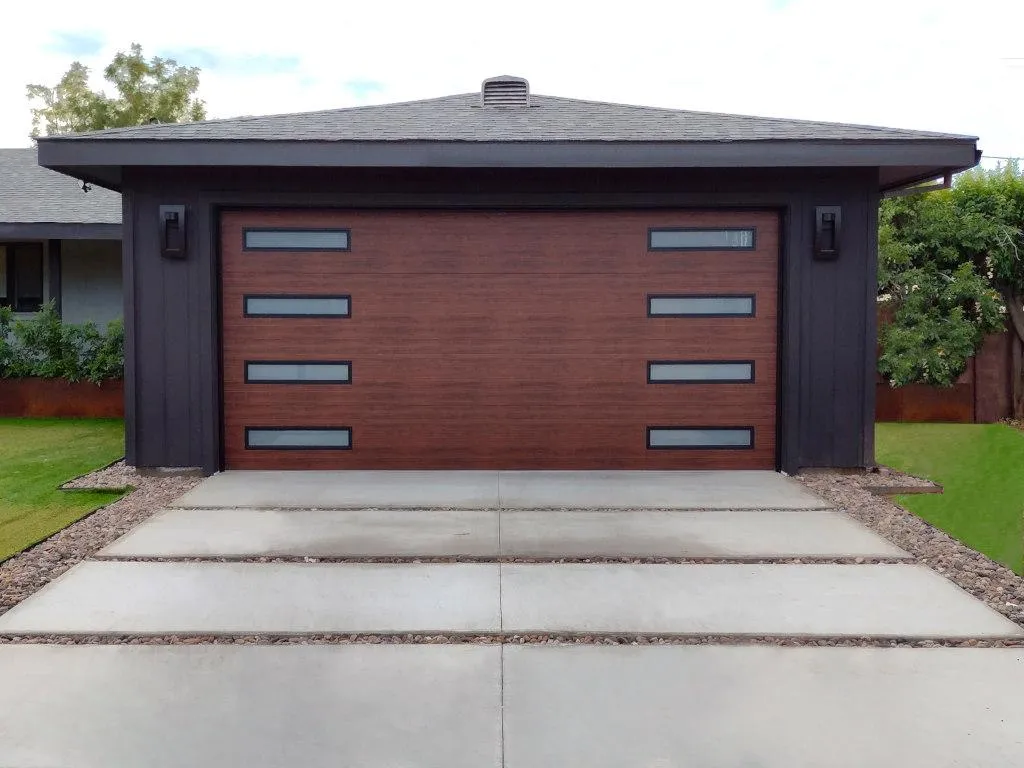 "Our two car carport to garage conversion came out exactly as we envisioned it. We love the metal siding and modern garage door, and we gained a lot of storage inside!"
